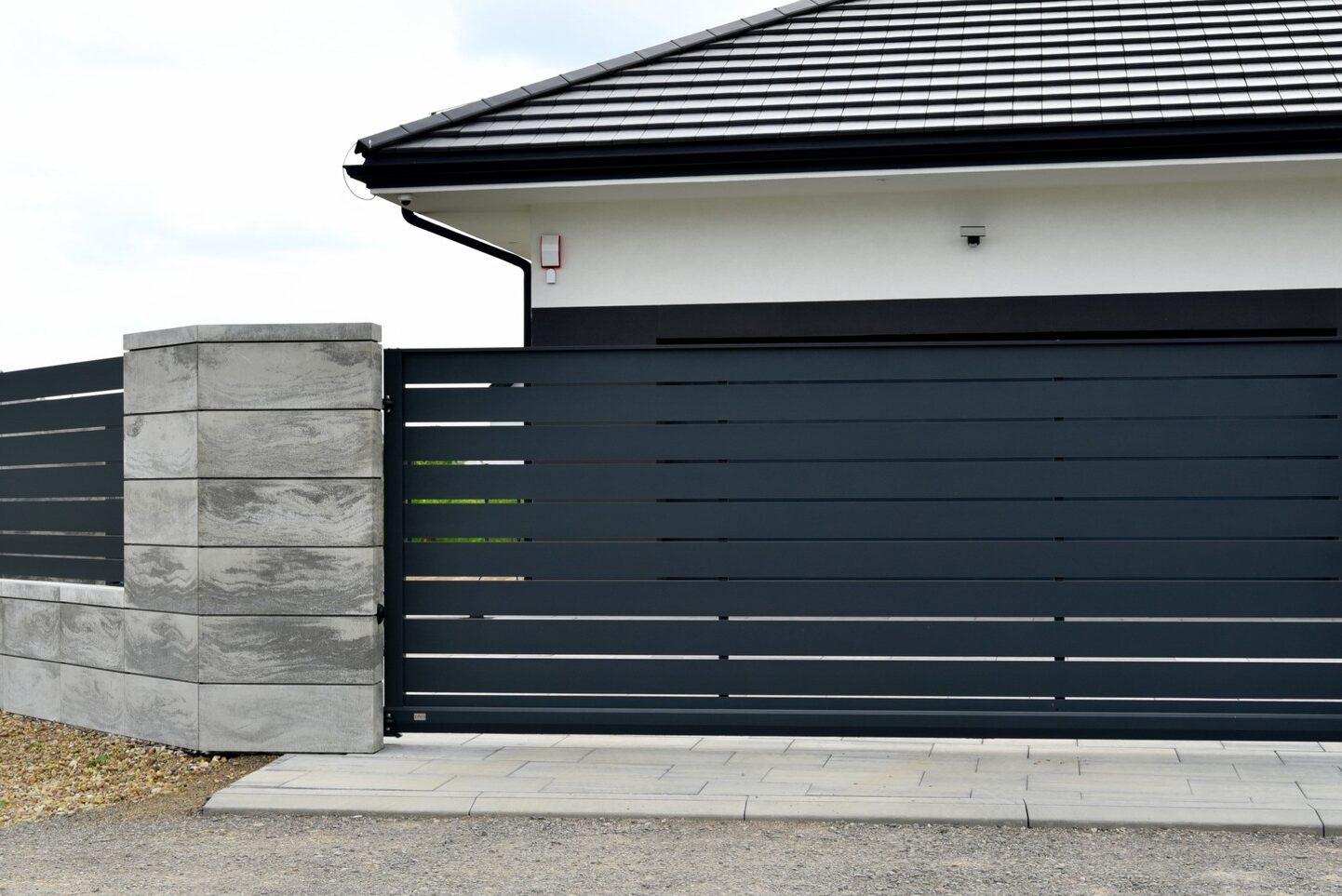 Coraz częściej inwestorzy sięgają też po głębokie czernie (RAL 9005). Czarne ogrodzenie jest bardzo wyraziste i dodaje prestiżu, zwłaszcza w wersji matowej lub o drobnej strukturze. To idealnym wyborem dla odważnych projektów, gdzie ogrodzenie staje się mocnym akcentem wizualnym.