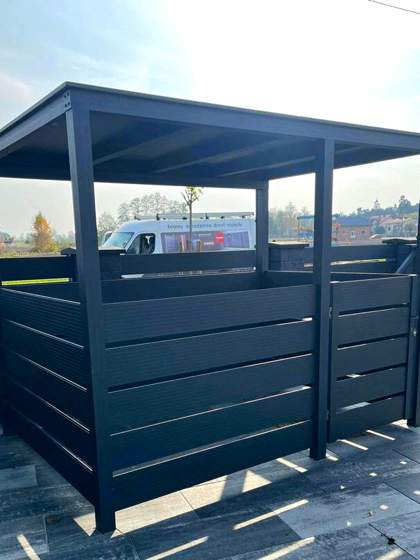 Jednym z największych problemów estetycznych na froncie posesji jest śmietnik. Wolnostojące kontenery rzadko pasują do wizji eleganckiego podjazdu. Idealne rozwiązanie to zintegrowana wiata lub altana śmietnikowa, która staje się integralną częścią konstrukcji. Nowoczesne ogrodzenia frontowe pozwalają na wydzielenie specjalnego modułu, który od strony ulicy wygląda jak zwykłe przęsło, a od strony ogrodu skrywa miejsce na segregację odpadów.